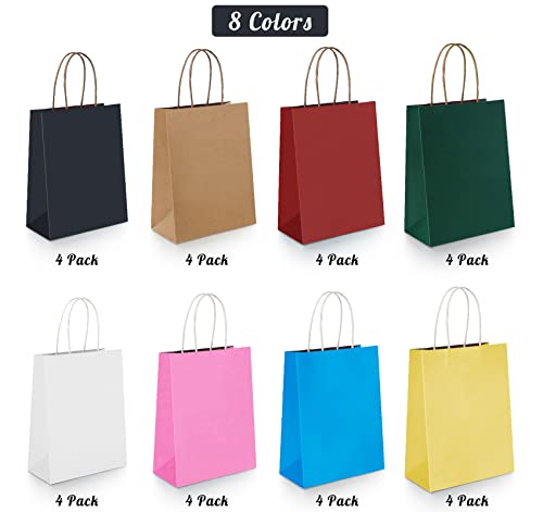 Anstore, 32 sacchetti di carta con manici, sacchetti regalo colorati, sacchetti di carta kraft, ideali per compleanni, baby shower, Natale, matrimoni e feste, 8 colori