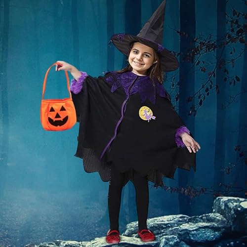 【Halloween Mantello Wizard Set】Pacchetto include 1x Halloween Wizard Cape, 1 sacchetto di zucca, Wizard Coat Kids Fai risaltare i tuoi bambini alla festa di Halloween.