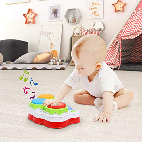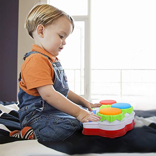 EDUCAZIONE ANTICIPATA: I tamburi sono blu, arancione e rosso: uno spettacolo colorato che stimola l'interesse del bambino e stimola la sua curiosità verso il suono e i colori. Allo stesso modo, ogni pulsante riproduce il verso di un animale, attirando ulteriormente l'attenzione del bambino mentre il giocattolo musicale suona.