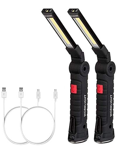 AntDau71 - Lampada da Lavoro USB Ricaricabile COB Lampade di ispezione luce da Lavoro Pieghevole Torcia con magnetica clip e gancio per Auto/Campeggio/Home e di emergenza uso (27x4.5cm) 2 Pezzi