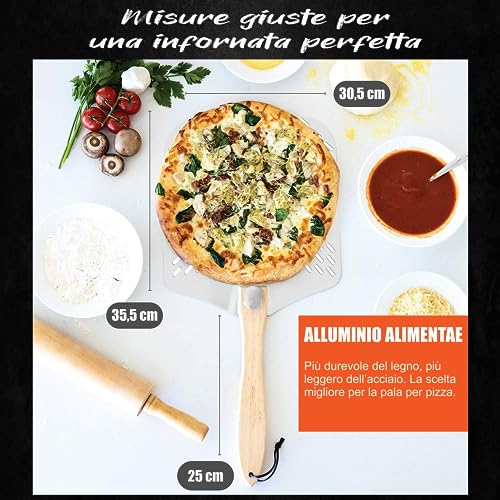 Antech Pala Per Pizza Forata, Pala Pizza Corta In Alluminio Con Manico Smontabile, Professionale, Progettata Per Un Uso Ottimale In Cucina, Paletta Per Pizza, Pane E Focaccia