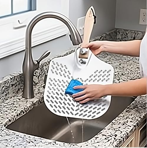 [SOTTILE E RESISTENTE] Con l'aiuto della pala per pizza, è molto facile cuocere in forno o sul barbecue la tua pizza fatta in casa e tirarla fuori dal forno senza bruciarti. Grazie al sottile materiale, puoi senza sforzo passare sotto l'impasto della pizza senza danneggiarlo. Una volta che il palino pizza è stata infarinato, anche la pizza scivolerà facilmente in forno senza alcun danno.