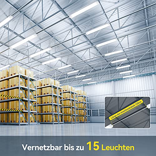 Anten 10pz Plafoniera da Officina 120cm 36W | 4000lm Collegabili Tubo Neon LED | Bianco Freddo(6000K) IP65 Impermeabile Plafoniere LED a Soffitto, per Garage Ufficio Cantina Cucina Supermercato