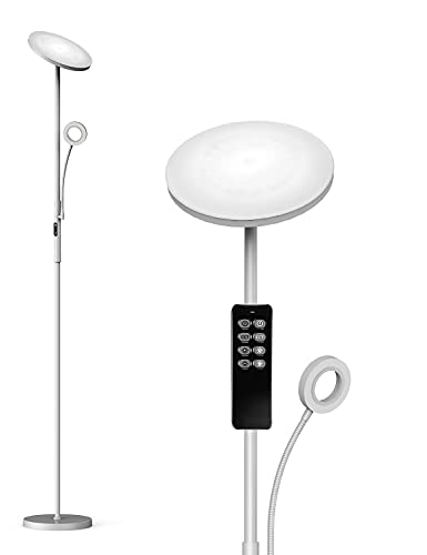 Anten Grigio Lampada LED da Terra Dimmerabile, Lampada da Pavimento a Doppia Luce, 30W e 5W, 3650LM Illuminazione da Pavimento, 3 Temperature di Colore, per Soggiorno, Camera da Letto, Ufficio