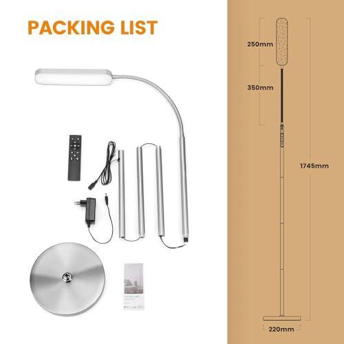 Anten Lampada da Terra Nichel 12W Piantana Lampada da Terra 4 Temperature di Colore con Dimmerazione Continua | Telecomando e Touch Control | 1H Timer | Lampada LED per Salotto, Camera da letto
