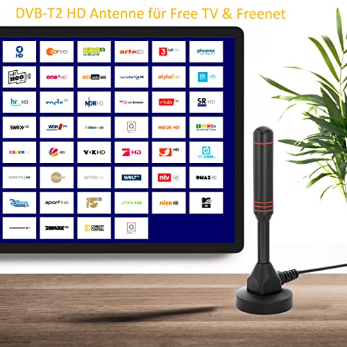 Antenna DVB-T2 ad alte prestazioni/Anima in alluminio massiccio per un segnale al top/DVB-T2 & DVBT-HD/digital ready / AVK25 Plus/base magnetica & cavo da 5 metri/Per ogni dispositivo DVB-T
