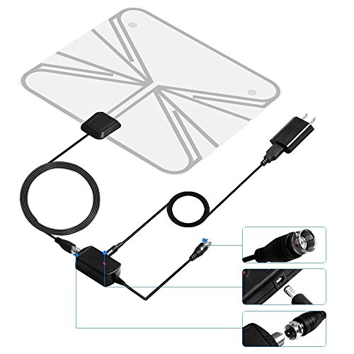 Antenna HDTV Amplificata - Capitolo Sette Antenna TV Digitale Indoor, Gamma 50 Miglia con Amplificatore Staccabile, 16,4 Ft Cavo Coassiale Rame e Alimentatore USB-Clear