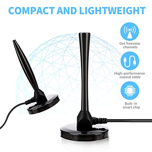 Antenna TV, Antenna TV per Interni Topretty ATSC DVB-T2 Condizionatore di Segnale Amplificato Integrato a 360°, Antenna con Portata di 250+ Miglia Supporta 4k 1080p, Palo a Due Forme per Tavolo