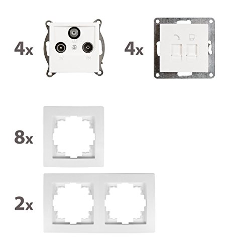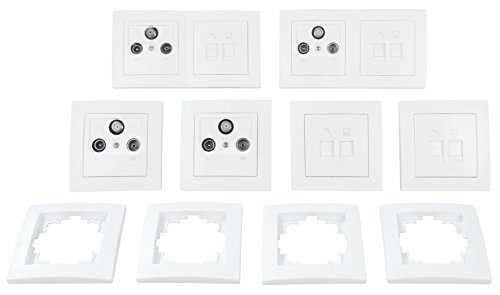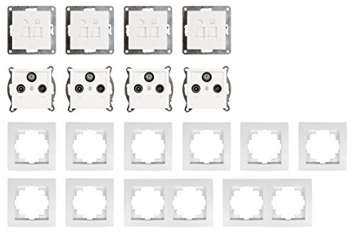 Set di antenne e prese di rete FLAIR"Multimedi", 18 pezzi, bianco