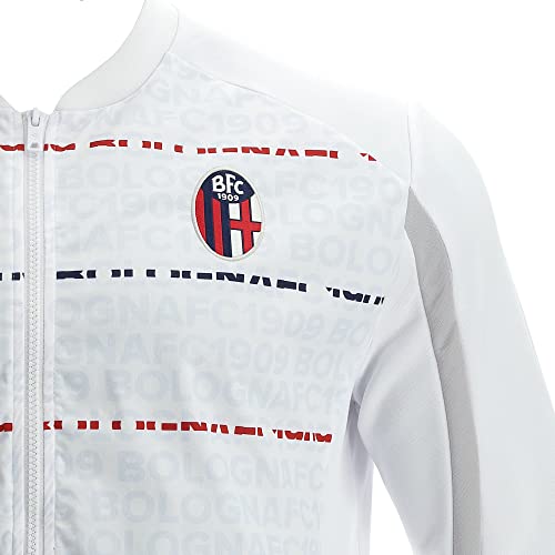 Giacca anthem Bologna FC 2021/22. Il capo è dotato di una comoda zip e di tasche laterali, anch'esse richiudibili mediante zip. Completa l'insieme la patch con lo scudetto lato cuore e, sul retro, la scritta 'Bologna FC 1909' in blu. Indossa la giacca anthem del Bologna FC con orgoglio!