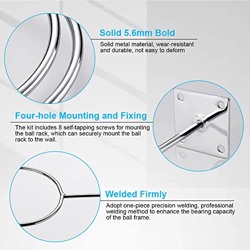 【Materiale Metallico Robusto】- La nostra porta palle da basket da parete sono realizzati con materiali metallici di alta qualità, la superficie è liscia senza sbavature e ha una bella lucentezza argentata, anticorrosione e antiruggine, lunga durata e possono essere installati all'interno o all'esterno. Viene adottato il processo di saldatura a pezzo intero, che è più stabile e ha una forte capacità portante.