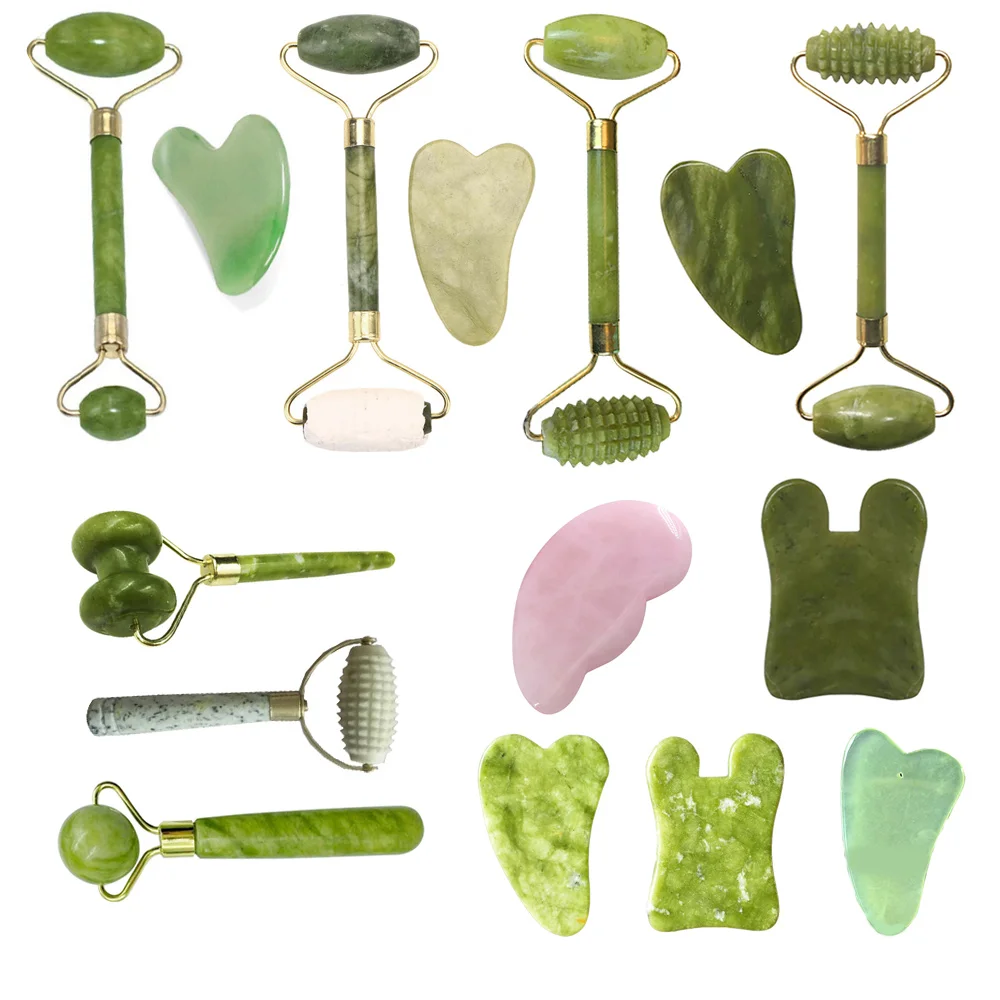 Anti Aging Natural Jade Roller face Gua Sha Massage Tool Set Therapy Facial Roller with Double Neck Slimming Massager