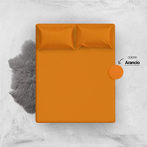 L'ANTICO ARCOLAIO Set Completo Letto Lenzuola 100% Cotone Tinta Unita (ARANCIONE, MATRIMONIALE 2P)