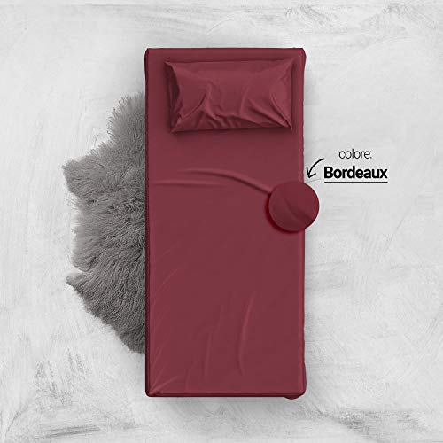 L'ANTICO ARCOLAIO Set Completo Letto Lenzuola 100% Cotone Tinta Unita (BORDEAUX, SINGOLO 1P)