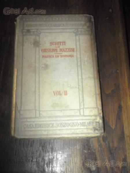 Libro antico della casa editrice Sonzogno Milano l'opera è di Giuseppe Mazzini e trattasi di uno studio-riflessione sulla politica ed economia Volume II