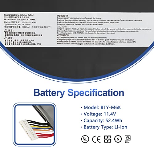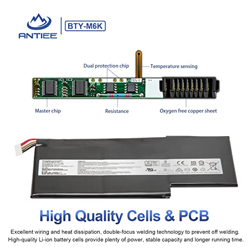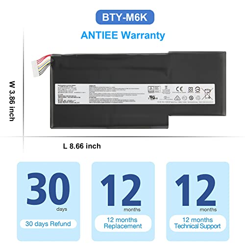ANTIEE BTY-M6K Replacement Batteria per MSI MS-17B4 MS-16K3 GS63VR 7RG Stealth Pro 7RG-005 7RG-036CN GF63 8RD-031TH 8RC-034CZ 9SC GF75 Thin 3RD 8RC 8RD 8SC 9SC-088CN Series 11.4V 4500mAh 52.4Wh