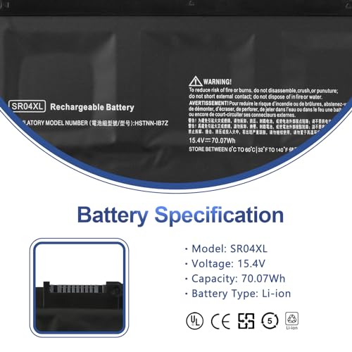 ANTIEE New SR04XL Laptop Batteria Compatible HP Omen 15-ce000 15-ce000ng 15-ce002n Pavilion Power 15t-cb2000 917678-1B1 917724-855 TPN-Q193 HSTNN-IB7Z (15.4V 70.07Wh/4550mAh)