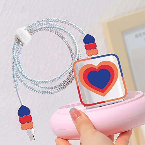 Antigoccia Impedisce la Rottura del Cavo Avvolgimento per Accessori di Decorazione, Cavo di Ricarica USB per Linee Dati Mobili con Delizioso Motivo a Cuori [Giallo Rosso Blu]