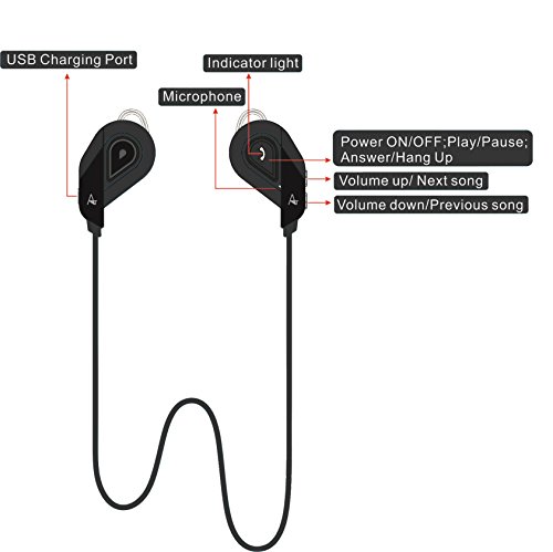 AntilaTech Wireless Bluetooth 4.1 Sports Auricolare con microfono, bassi profondo, mani libere, sudore a prova, Groviglio-Free, In-orecchio, stereo, auricolari / cuffie per lo sport e gli di musica entusiasta - adatto a dispositivi Bluetooth tale come iOS/ Windows / Android smartphone/tablet, computer portatili e la maggior parte degli altri dispositivi audio Bluetooth (Black)