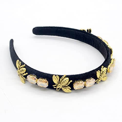 Antique Anyan Cerchietto per capelli in velluto nero con strass retrò personalità ape fatto a mano Accessori per capelli barocco (oro)