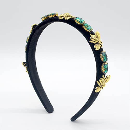 Antique Anyan Cerchietto per capelli in velluto nero con strass retrò personalità ape fatto a mano Accessori per capelli barocco (verde)