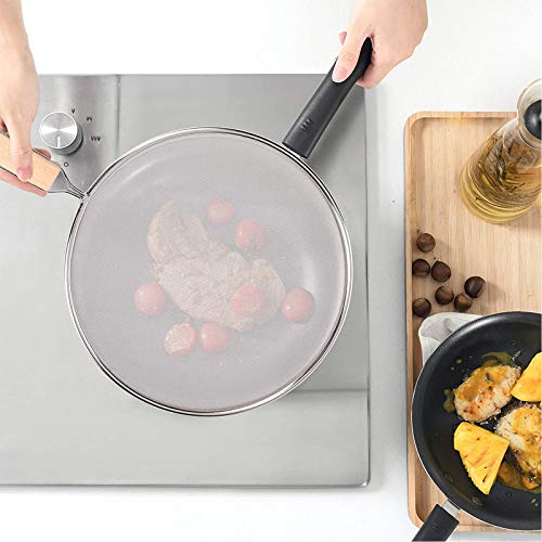 【Design umano】 Copertura della padella La rete leggera lo rende facile da usare e il vapore può fuoriuscire normalmente. Realizzato la protezione più efficace sul mercato aumentando il numero di maglie e schizzi di padelle.