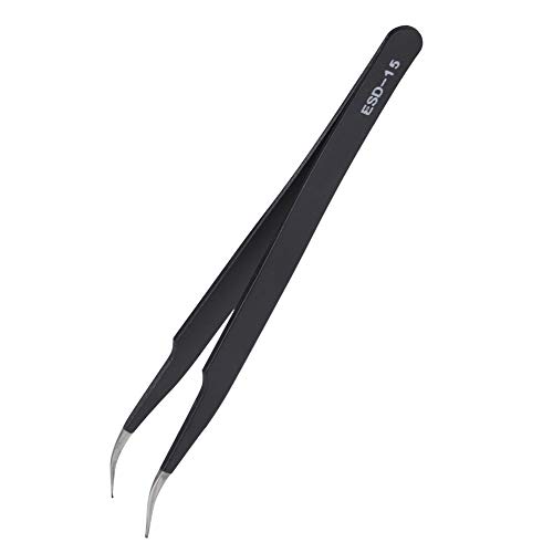 Antistatico Pinzette ESD 15 Alta Precisione Punta Curva Indurire Estensione Delle Ciglia Nail Art Elettronica Strumento Di Manutenzione In Acciaio Inox Nero 11,6 CM Pinzette di Precisione