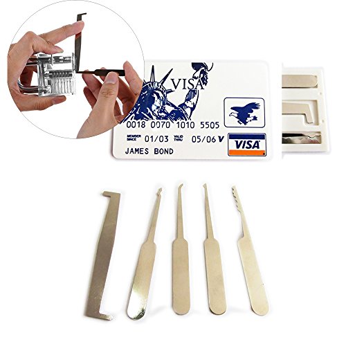 Antool blu trasparente spaccato pratica lucchetto + set di grimaldelli gancio in acciaio INOX con PU Storage Bag + pezzi di hardware utensili multifunzione con carta di credito