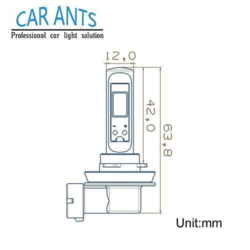 Car Ants auto parts estremamente luminoso COB chips, H1 H3 H4 H7 H8/H9/H11 H10 H16 880 881 9005(HB3) 9006(HB4), 30W 1400LM LED Fog Light bulbs, Plug-n-Play freddo colore bianco(H11)(confezione da 2)