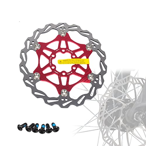 Anvek Disco Freno a Disco per Bicicletta, 160MM/180MM/203MM MTB Road Bicycle Rotori Brake Pad Mountain Bike flottante Blocco Centrale Accessori per Biciclette (180mm, red)