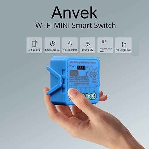 Anvek interruttore wifi smart intelligente Telecomando Timer Switch rf Wireless Controllo Remoto con Telefono App iOS Android, Compatibile con Alexa Echo e Google Home, 10A / 2500W (ASEC02)