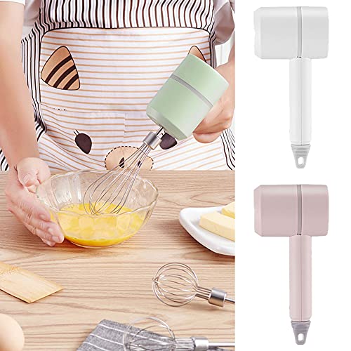 Anwangda Frusta elettrica senza fili, frusta portatile, montalatte a 3 velocità, per cucina, mini crema per uova con 2 teste diverse (bianco)