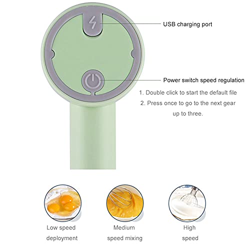 Anwangda Sbattitore elettrico senza fili, frusta portatile, montalatte a 3 velocità, per cucina, mini crema per uova con 2 teste diverse (verde)