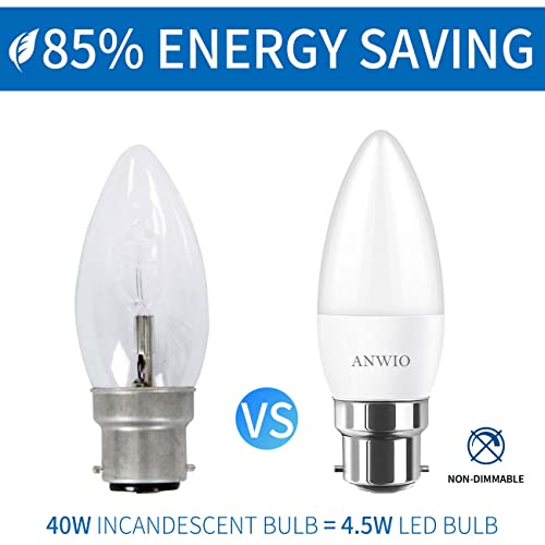ANWIO Lampadina a LED Attacco B22,Forma a Candela, 2700K Luce Bianca Calda,4.5W Equivalente a 40W,470LM,Risparmio Energetico,Non Dimmerabile,Confezione da 6 Pezzi