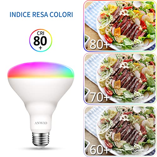 ☀ANWIO Lampadina LED Smart con Attacco E27, Forma BR30, 9W equivalente a 60W di lampadina a incandescenza, 806Lm, pacco da 2 pezzi;
