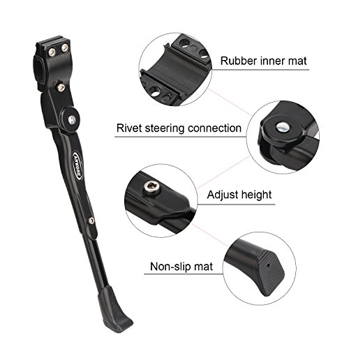 ANWONE Cavalletto Laterale Regolabile, basamento registrabile della lega di alluminio MTB con il piedino di gomma antiscivolo, supporto universale per MTB bici 22"-28"(Nero)
