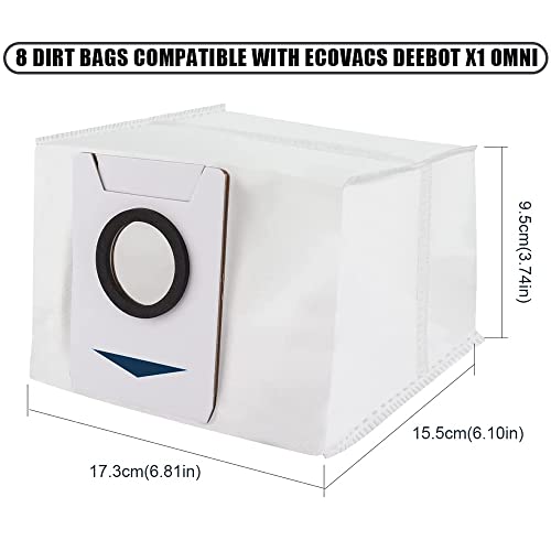 Anwor 8 pezzi di ricambio/accessori compatibili con Ecovacs Deebot X1 Omni stazione di aspirazione, 8 sacchetti per aspirapolvere compatibili con Ecovacs Deebot X1 Omni Stazione di Aspirazione