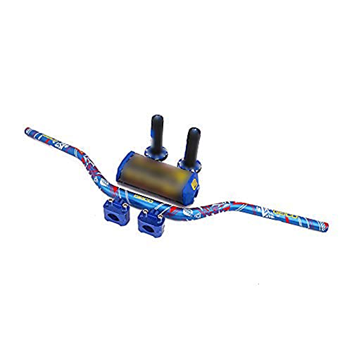 AnXin, Manubrio per modo da 28 mm, con morsetto per montaggio su manubrio + cuscinetto + impugnature, per moto Honda, Yamaha, Kawasaki, Suzuki, per pit dirt bike e moto off road, colore blu