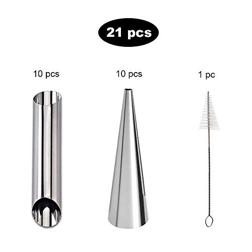 Anyasen cannoli stampi set 21 pezzi Cannoli Tubi Cono Rullo stampi di Acciaio Inossidabile con pennello per la pulizia Stampi per Spirale Croissant Stampi Pasticceria Crema Horn Torta Pane Mold