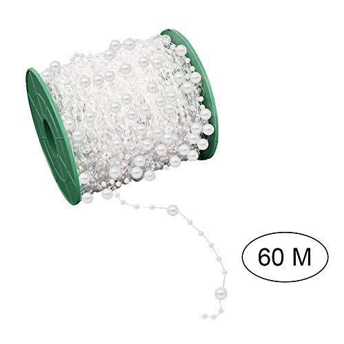Anyasen 60m Fili Ghirlanda di Perle Filo Perle Bianche Ghirlanda di Perle Fili Perline Cordoncino di Perle Fili Perline per Capelli Sposa Fai da Te Matrimonio Nozze Feste Compleanni Battesimi