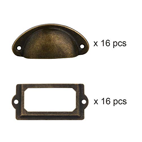 32 set di maniglie per cassetti: questo pacchetto comprende 16 pezzi di maniglie a conchiglia (con 32 viti) + 16 telai per etichette in metallo (con 32 viti).