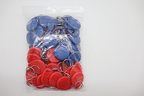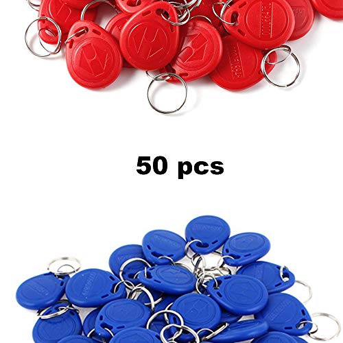 Anyasen 50 pezzi 125khz RFID Targhette Portachiavi di prossimità ID Card EM4100 Chiave Token tag di testo keychain Anello Controllo di Accesso di RFID Tag con accessi in Sola Lettura Blu rosso