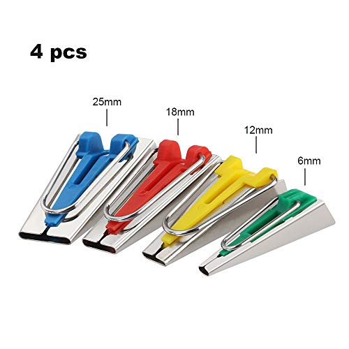 Strumento Bias Tape Maker per tessuto: 4 diverse dimensioni di rilegatura, 6 mm, 12 mm, 18 mm, 25 mm, con 50 clip per cucire (colore casuale).