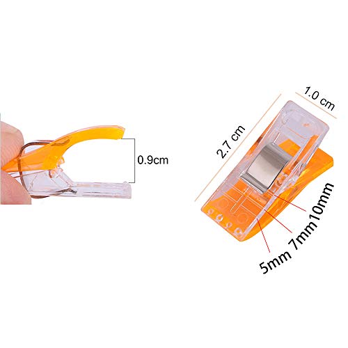 50 clip per cucire: fornisce una presa salda sul tessuto senza lasciare segni. Ha tre linee di marcatura che distano circa 5 mm, 7 mm e 10 mm dalla bocca della clip in modo da poter misurare quanto è lontana. Dimensione: ca. 27 * 10mm (L * W)