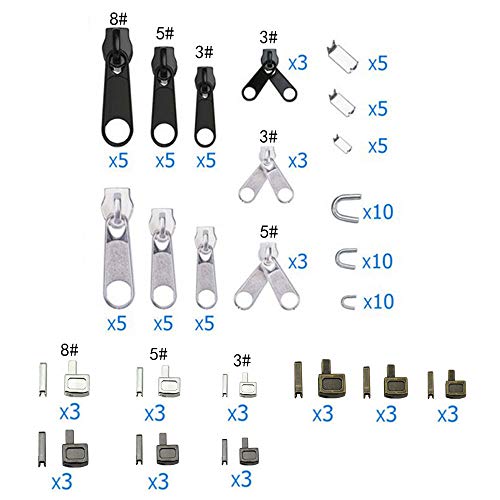 Anyasen 112 Pezzi Sostituzione Cerniera Kit di Riparazione Cerniera cursore Cerniera Zip linguette Cerniera Fixer Kit di Riparazione Cerniera Sostituzione per Riparazione della Cerniera