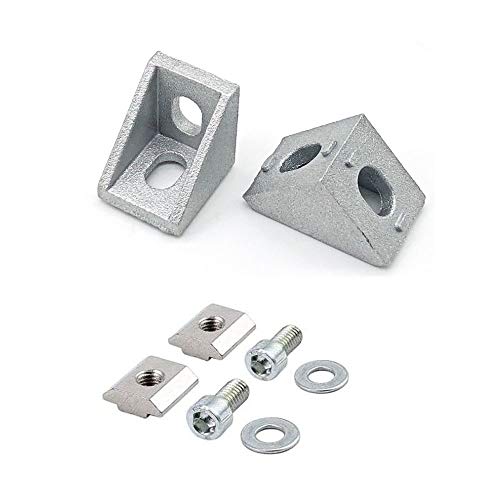 Anyasen Staffa angolare in Lega di 2020 Alluminio Angolare di L Fissaggio dell'Alloggiamento del Giunto Supporto con Vite T-Scanalatura Dado Femmina d'Argento per Profilo di Estrusione di Alluminio