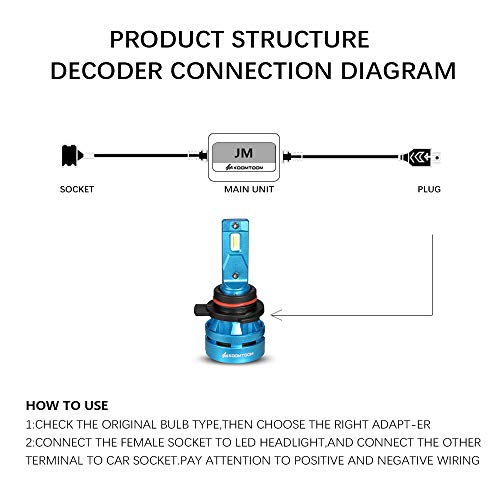 Decodificatori per condensatori: i decoder per lampadine per fari a led KOOMTOOM sono decodificatori per condensatori che trasmettono per segnale a impulsi, molto meglio del decoder a resistenza, sono ecologici e a risparmio energetico. Design all-in-one. Configurazione Plug and Play per kit di conversione fari a LED. Tempo medio di installazione: 10-15 minuti.