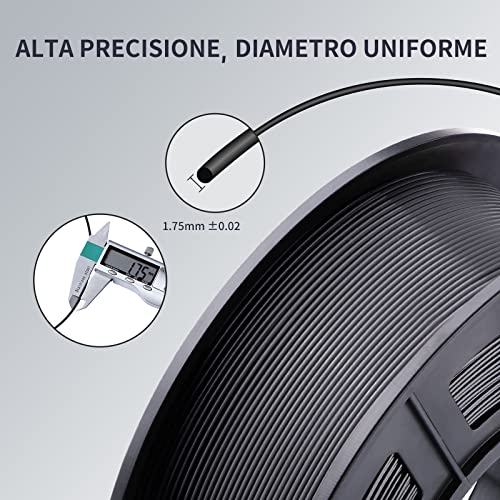 Tolleranza dimensionale ± 0,02 mm: I filamenti per stampanti 3D sono prodotti secondo specifiche più precise e hanno una tolleranza di soli +/- 0,02 mm. Rotondità perfetta e tolleranza del diametro molto stretta, circa 330 m di filamento su ogni bobina facilità d'uso, deformazione minima, nessun odore, nessun intasamento, nessuna bolla. Regalati una meravigliosa esperienza di stampa.