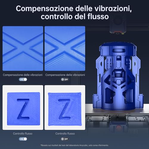 [Ottimizzazione della Qualità di Stampa] Con la funzione di compensazione delle vibrazioni con un solo clic, la stampante è in grado di eliminare le risonanze degli assi X/Y, assicurando una stampa precisa e stabile. L'utilizzo del "controllo del flusso" garantisce una retrazione intelligente, distribuendo uniformemente il materiale su ogni strato per una stampa omogenea e di alta qualità.