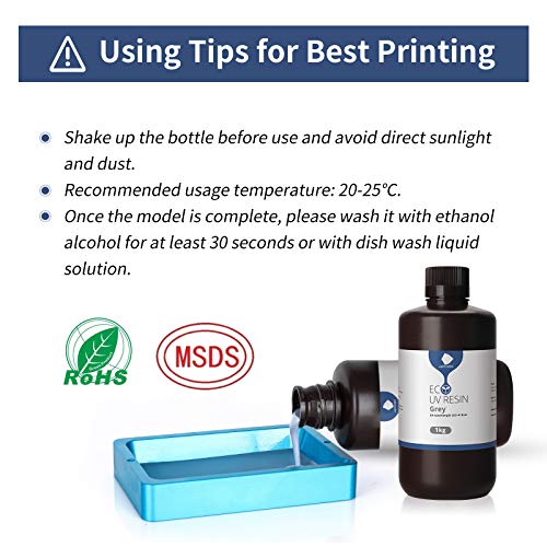 ANYCUBIC Resina ECO Stampante 3D, Resina Plant-Based UV 405 nm con Alta Precisione e Polimerizzazione Rapida ed Odore Ultra Basso per Stampa 3D (Grigio, 1kg)